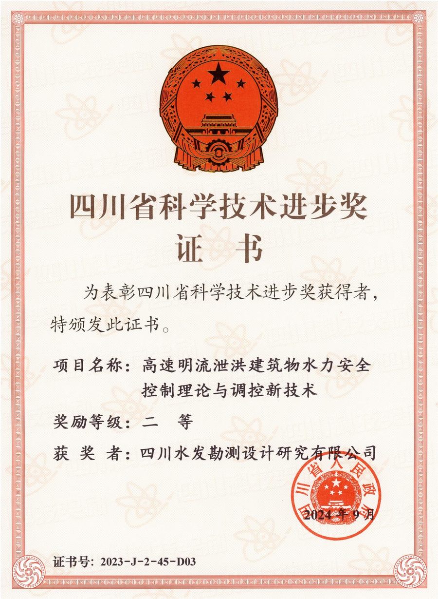 9月10日,四川省科學(xué)技術(shù)獎(jiǎng)勵(lì)大會(huì)在成都舉行,會(huì)上宣讀了省政府《關(guān)于2023年度四川省科學(xué)技術(shù)獎(jiǎng)勵(lì)的決定》。四川水發(fā)設(shè)計(jì)公司參與完成的“高速明流泄洪建筑物水力安全·控制理論與調(diào)控新技術(shù)”榮獲四川省科學(xué)技術(shù)進(jìn)步二等獎(jiǎng)。該項(xiàng)目的研究成果應(yīng)用于紫坪鋪水利樞紐、鍋浪蹺水電站等25項(xiàng)水利水電工程,取得了顯著的經(jīng)濟(jì)、社會(huì)和生態(tài)環(huán)境效益。